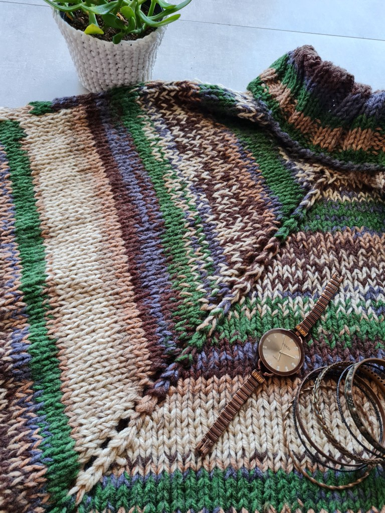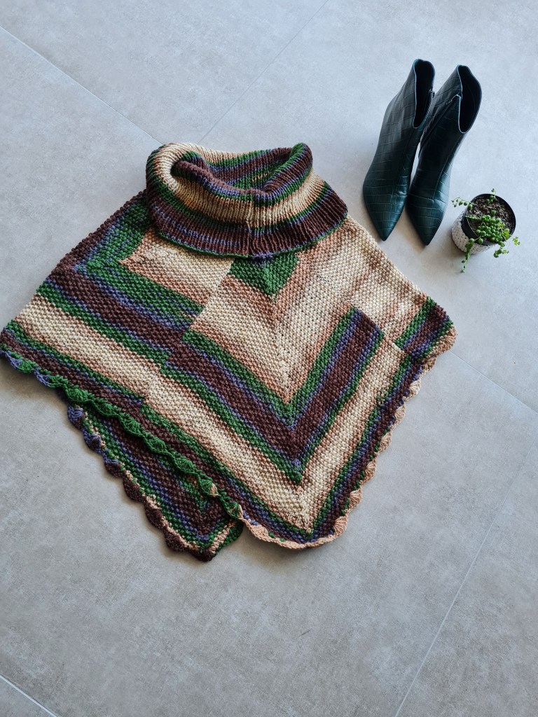 Poncho de Lã feito em Tricô e Crochê