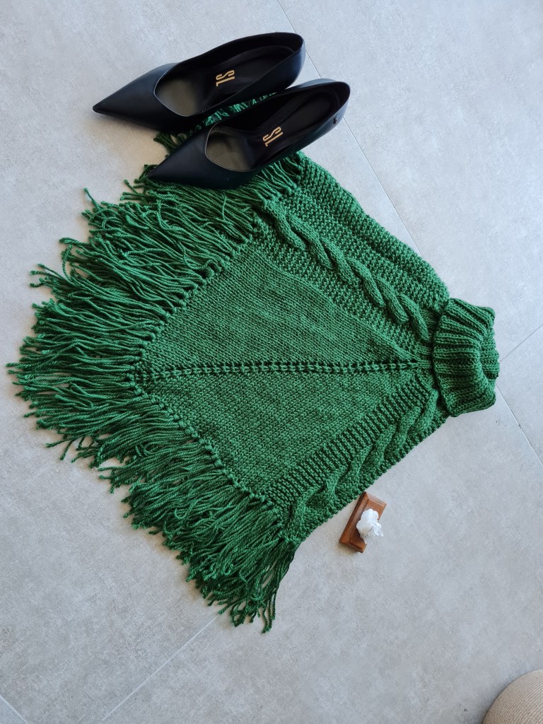 Poncho Verde em Tricô