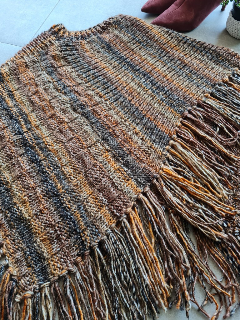 Poncho Feminino em Tricô com Franjas