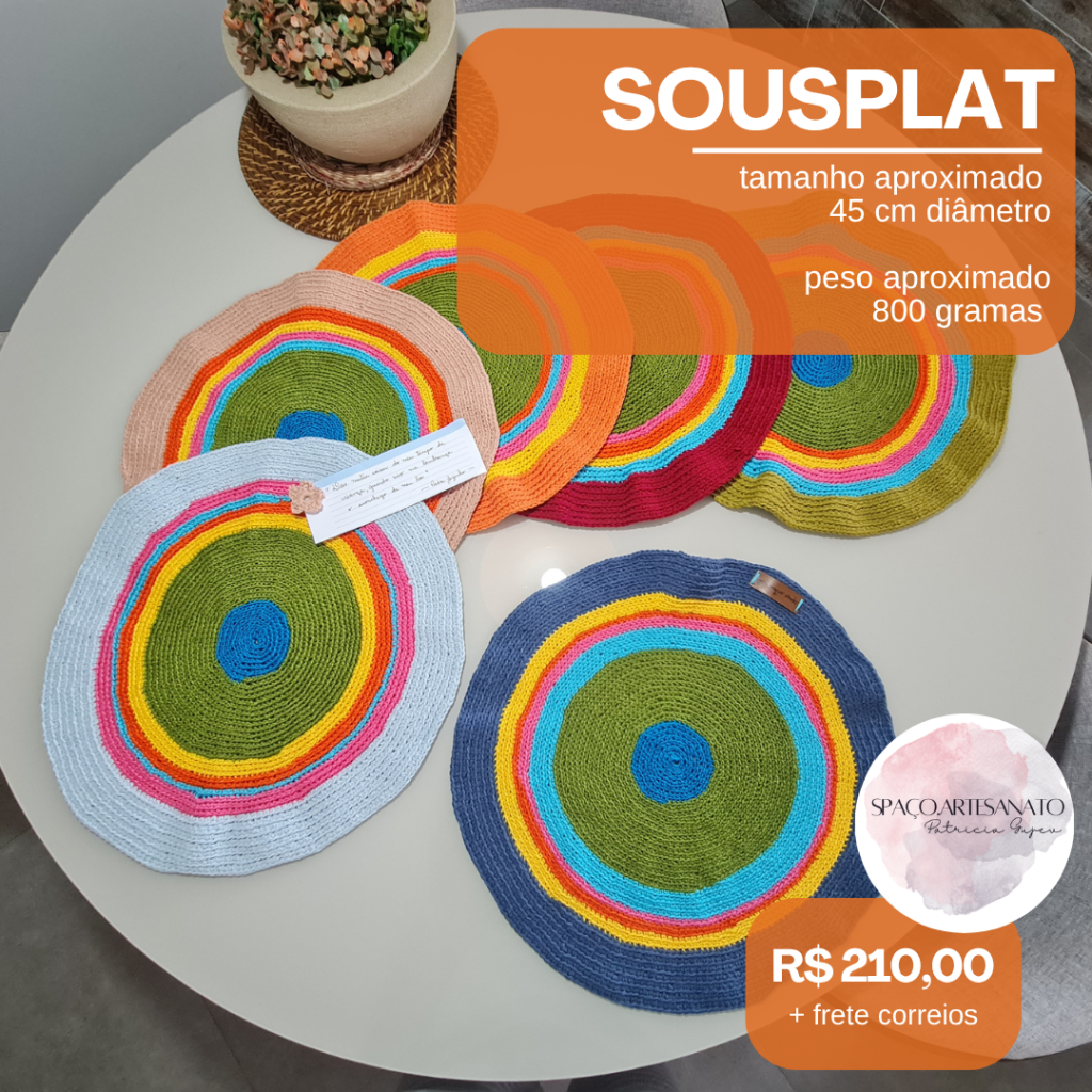 Perfeito para criar composições marcantes e surpreender seus convidados, o sousplat protege a mesa e destaca a beleza dos seus pratos de forma artesanal. Adquira uma peça exclusiva que reflete a dedicação e o carinho do trabalho manual, ideal para quem busca itens únicos para a sua casa.